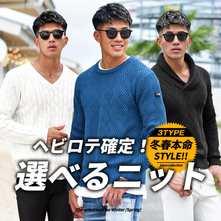 鮮やかなカラーリングと首元が3タイプから選べるニットなので、どんなCPOジャケットにも合わせることができます!