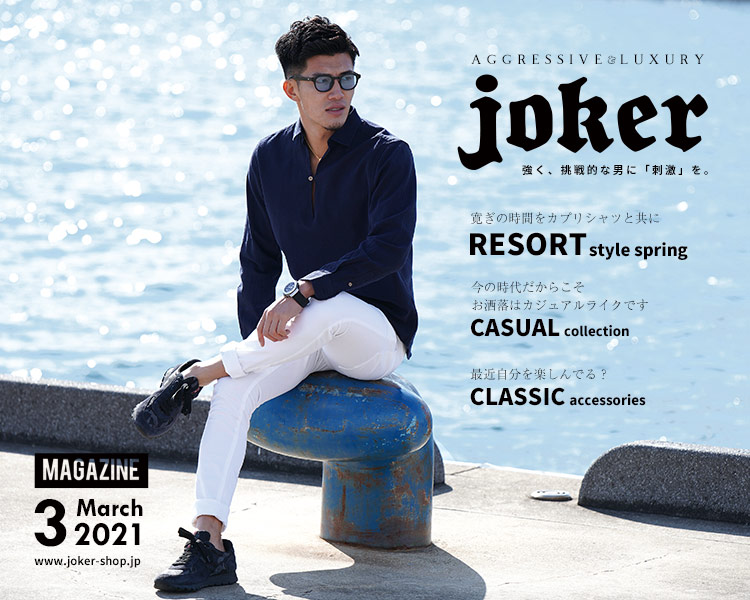 今年もjokerの夏がやってきた。 新作アイテムも続々登場。あなたの魅力をより輝かせる、夏のモテコーディネート特集など。