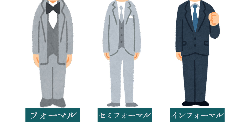 インフォーマルは略礼装(りゃくれいそう)とも呼ばれ、フォーマルやセミフォーマルよりも少しリラックスしたスタイルです。