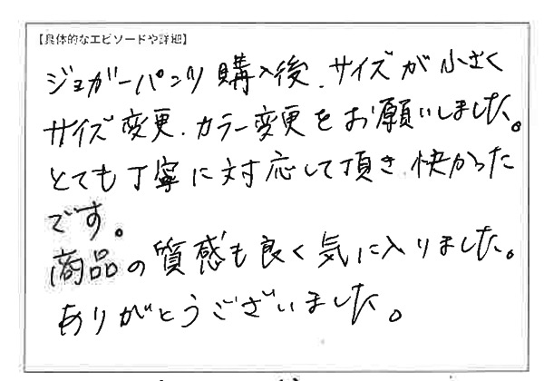 商品交換後、ご満足いただけたようで安心いたしました^^またご購入の際にご不安な点がございましたら、お気軽にお問い合わせくださいませ。
