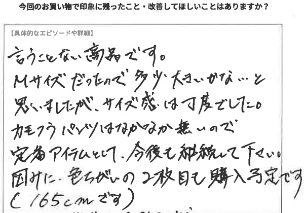 商品に関するご意見、誠にありがとうございます。生産担当者に共有し改善に努めさせていただきます!