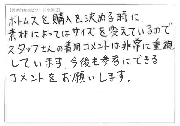 いつもjokerをご愛顧いただき誠にありがとうございます。スタッフの着用コメントを参考にしてくださっているとのこと、大変有難くスタッフの励みとなります!!よりお買い物がしやすいお店を目指して今後も尽力して参ります。