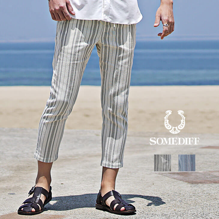 清潔感の象徴的アイテム「ネイビーストライプ」をパンツで取り入れ、シンプルにTシャツを合わせたコーデ。シンプルながら爽やかさとこなれ感を感じさせる組み合わせですね。 シンプルなパンツや無地の組み合わせには飽きた!という人にはかなりオススメのコーデ。 リゾートやアウトドアなシーンでラフにカッコよく楽しめるので、これからの季節にピッタリです。