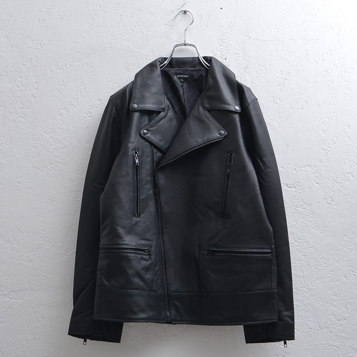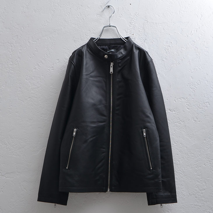 レザーアイテムの定番「シングルライダース」は首元のスッキリしたラインや飾りのないシンプルさが男っぽさをかき立てます。
