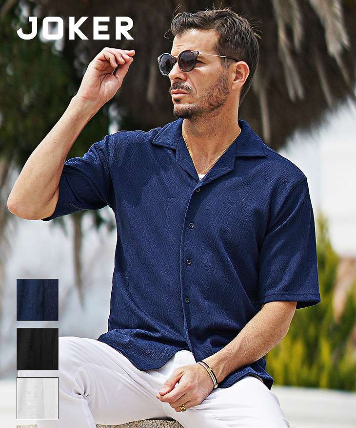 ジャガード開襟半袖シャツ