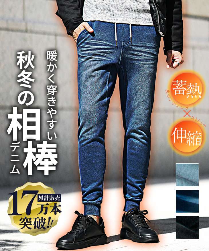裏起毛スウェットデニムジョガーパンツ(ウエストゴム)