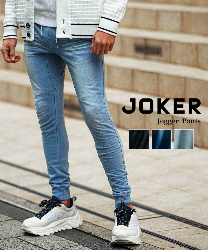 【送料無料】ウエストゴム・タイトスウェットデニムジョガーパンツ