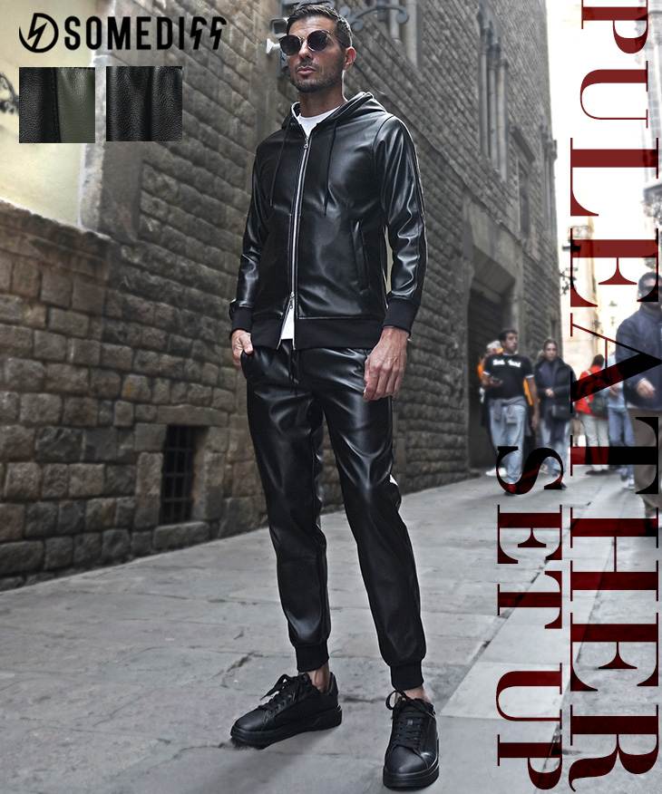 PUレザーパーカーセットアップ