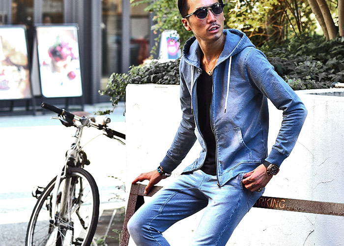 【都会の休日はデニム風スウェット】
