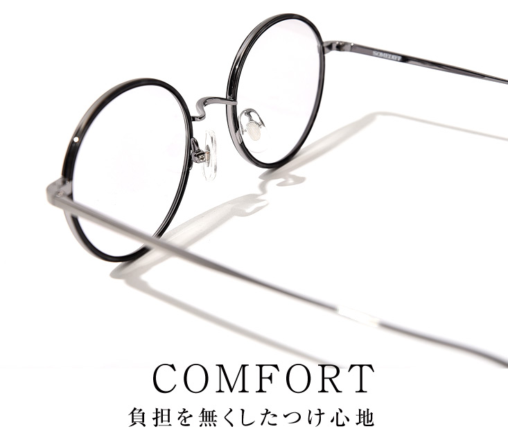 テンプルに芯を入れることにより強度を保つと同時に、一人一人の頭の形に合わせた調整(フィッティング)が可能に。