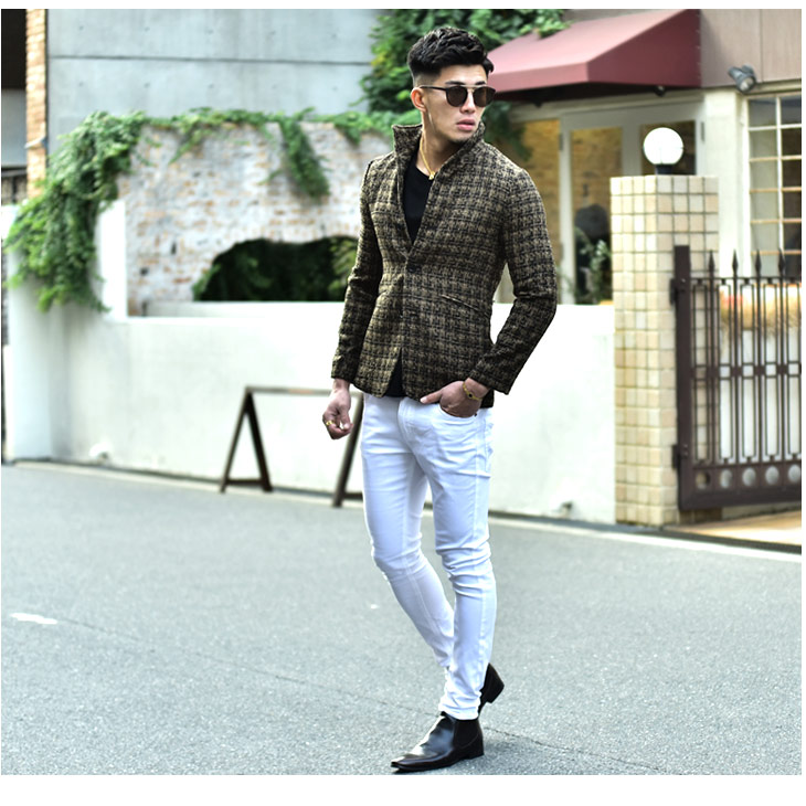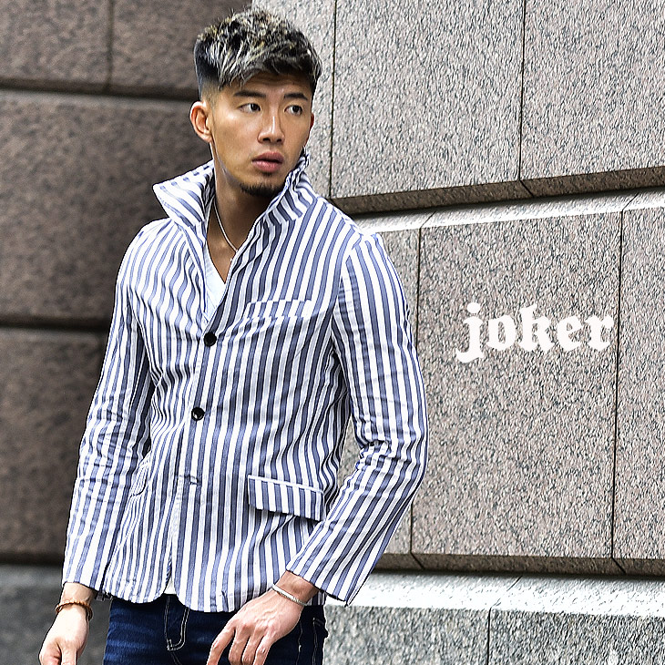 まじめな雰囲気の一般的なテーラードジャケットに比べて、ジャケットスタイルに遊びを入れた感じになりますね!