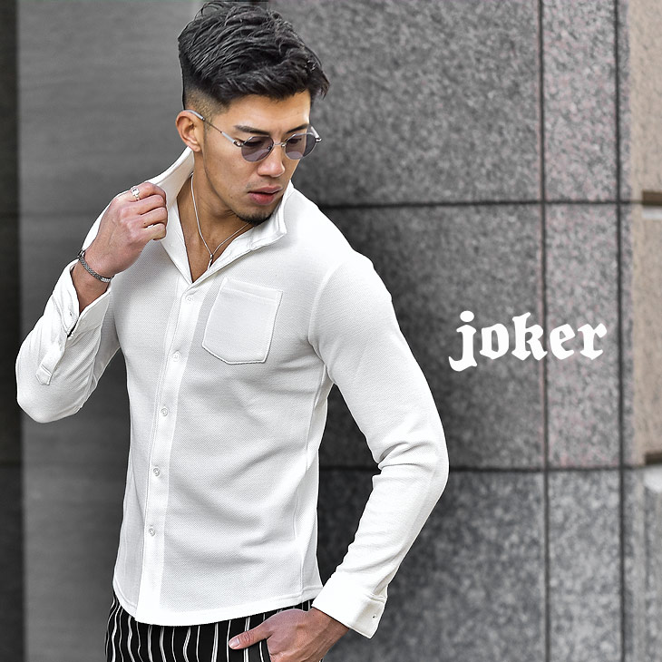 シャツと同様に襟先にかけて立ち上がった襟です。
