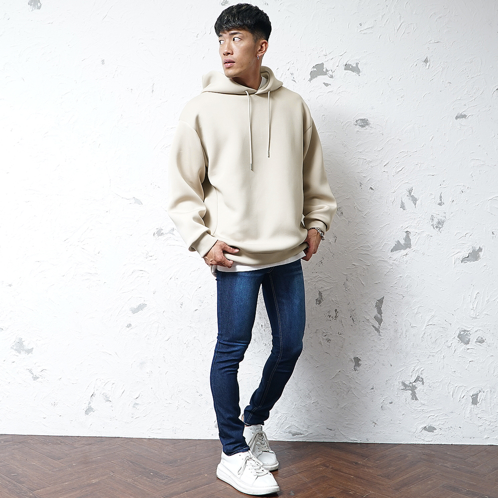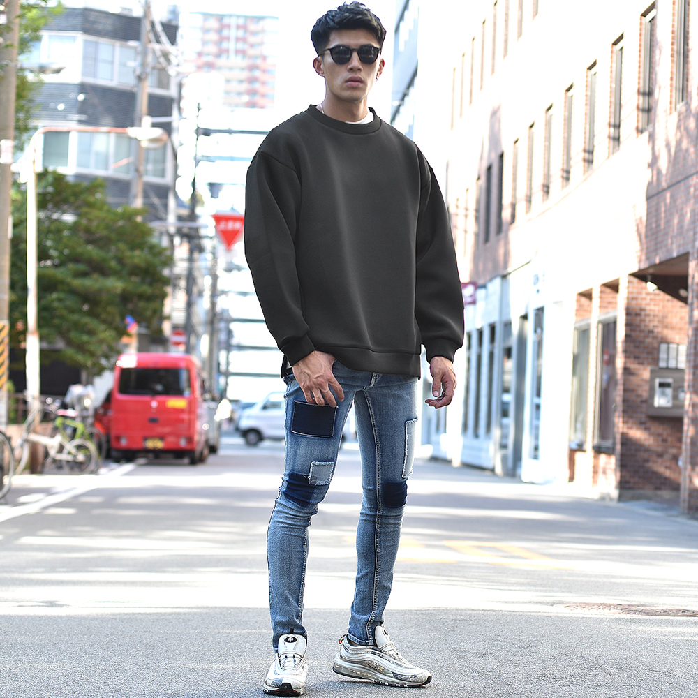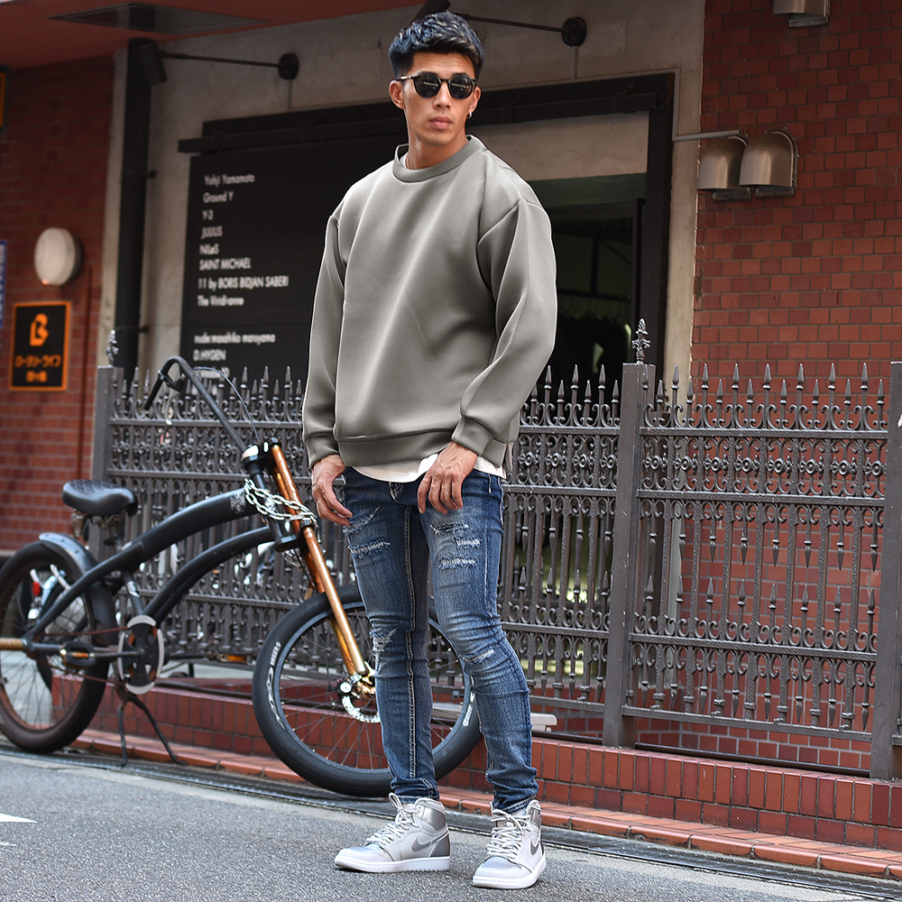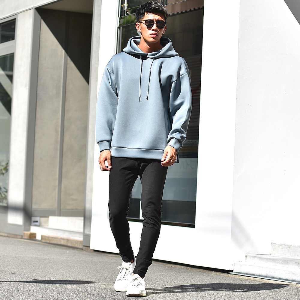 ビッグシルエットのトレーナーやパーカーは、メンズでもスウェットタイプのアイテムが多いですが、 人と被らない為には生地選びもひとつポイントになります。