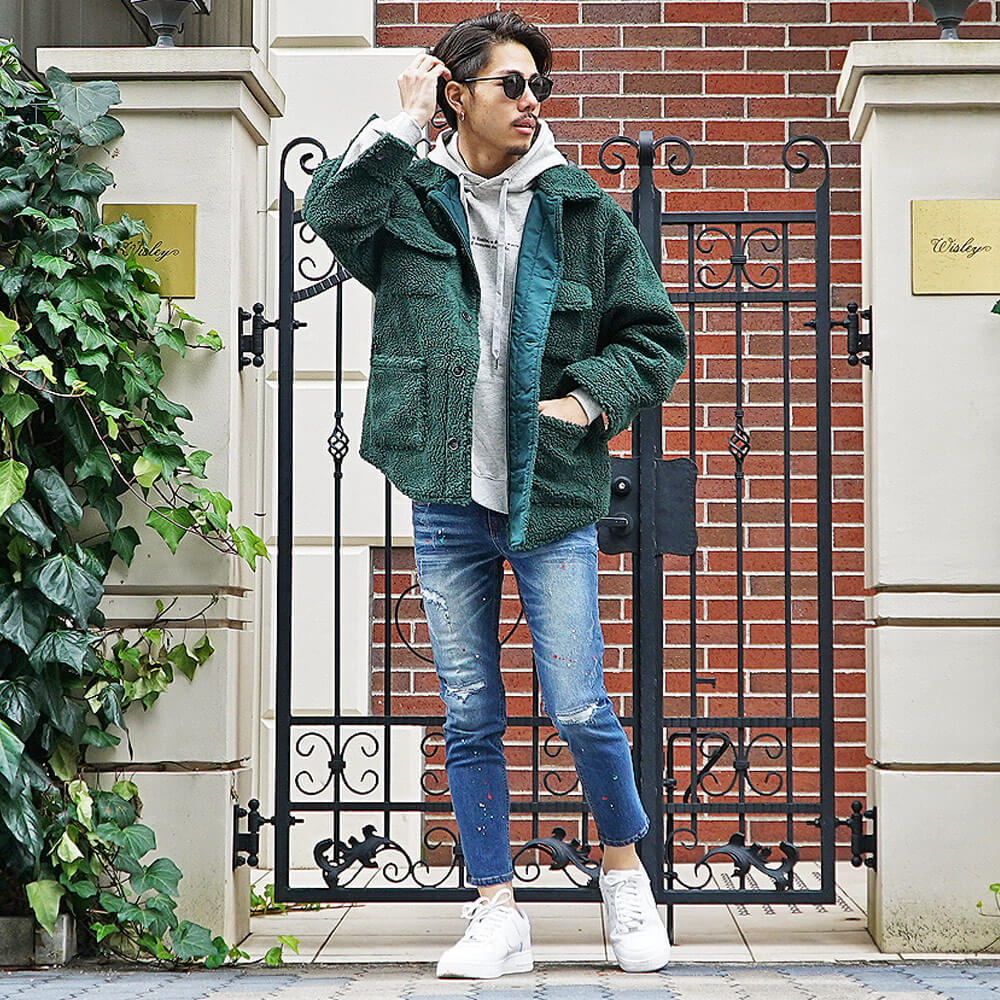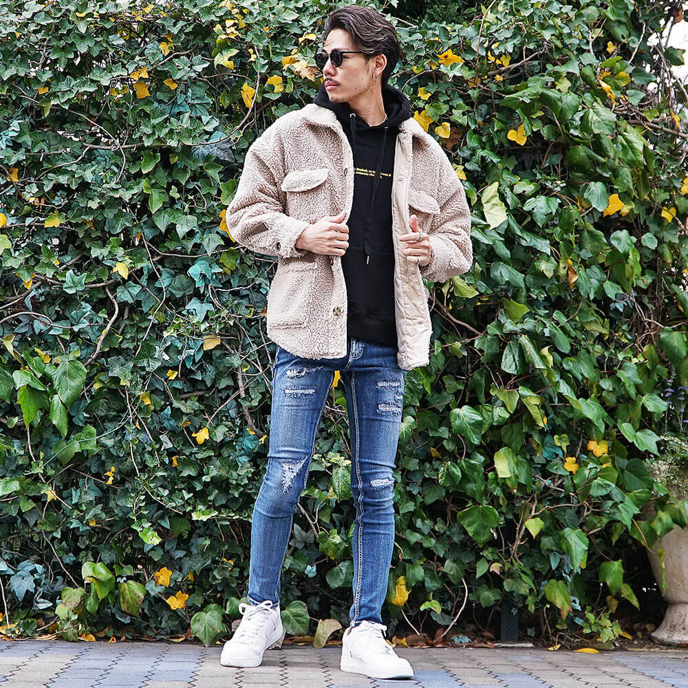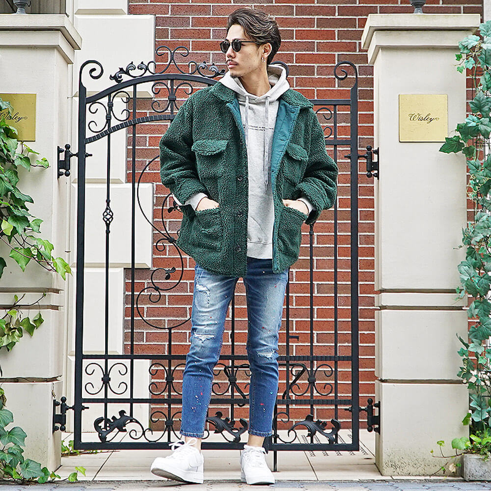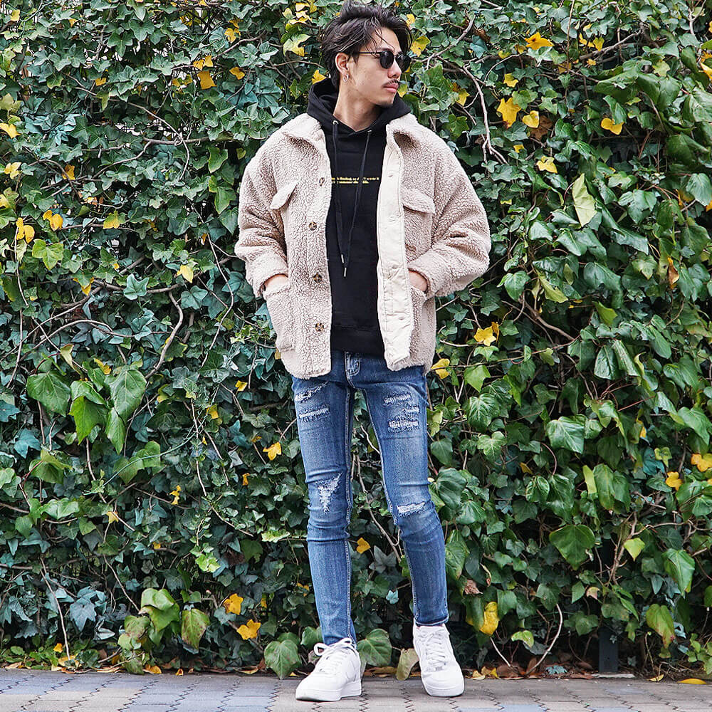 色の違い別ボアジャケットメンズコーデ