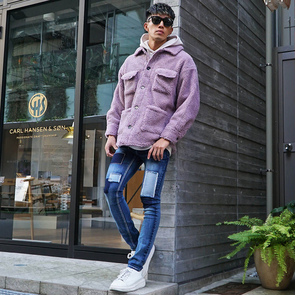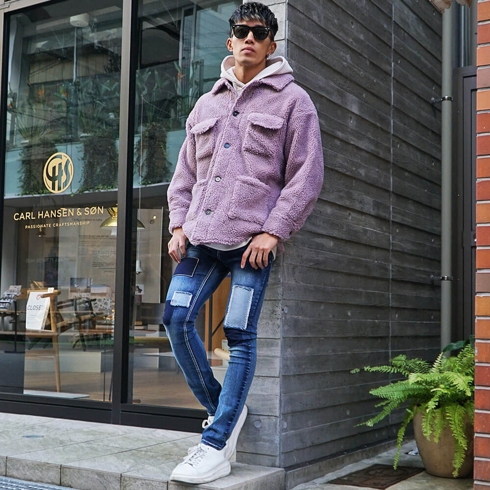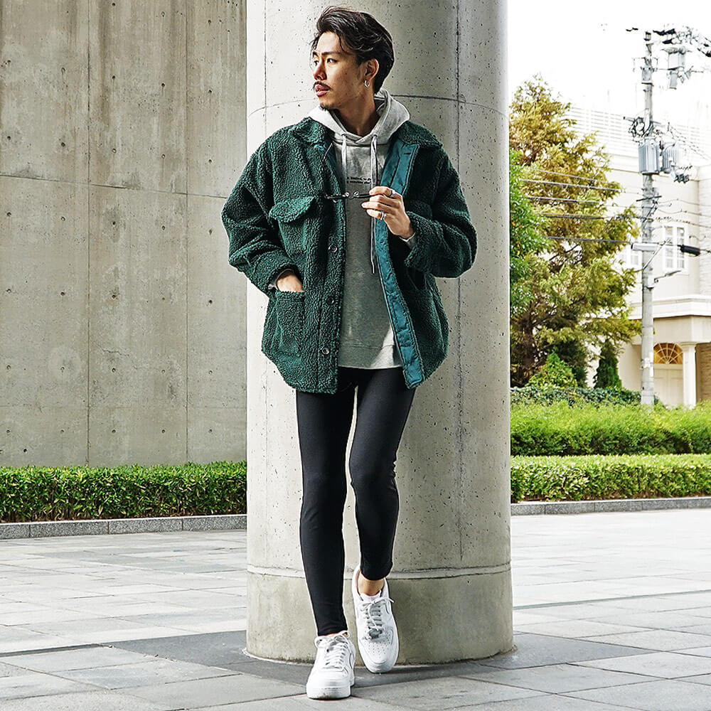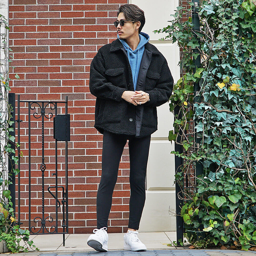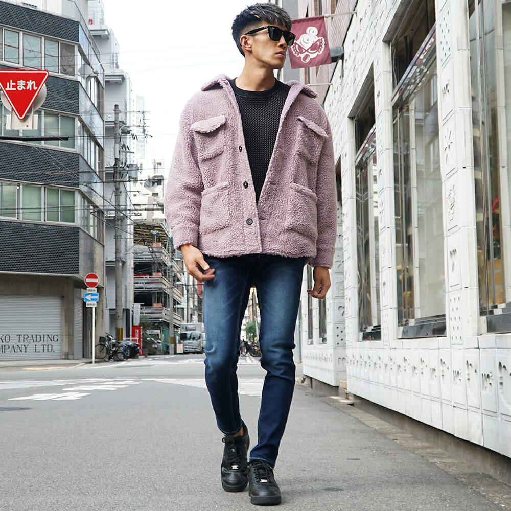 色の違い別ボアジャケットメンズコーデ