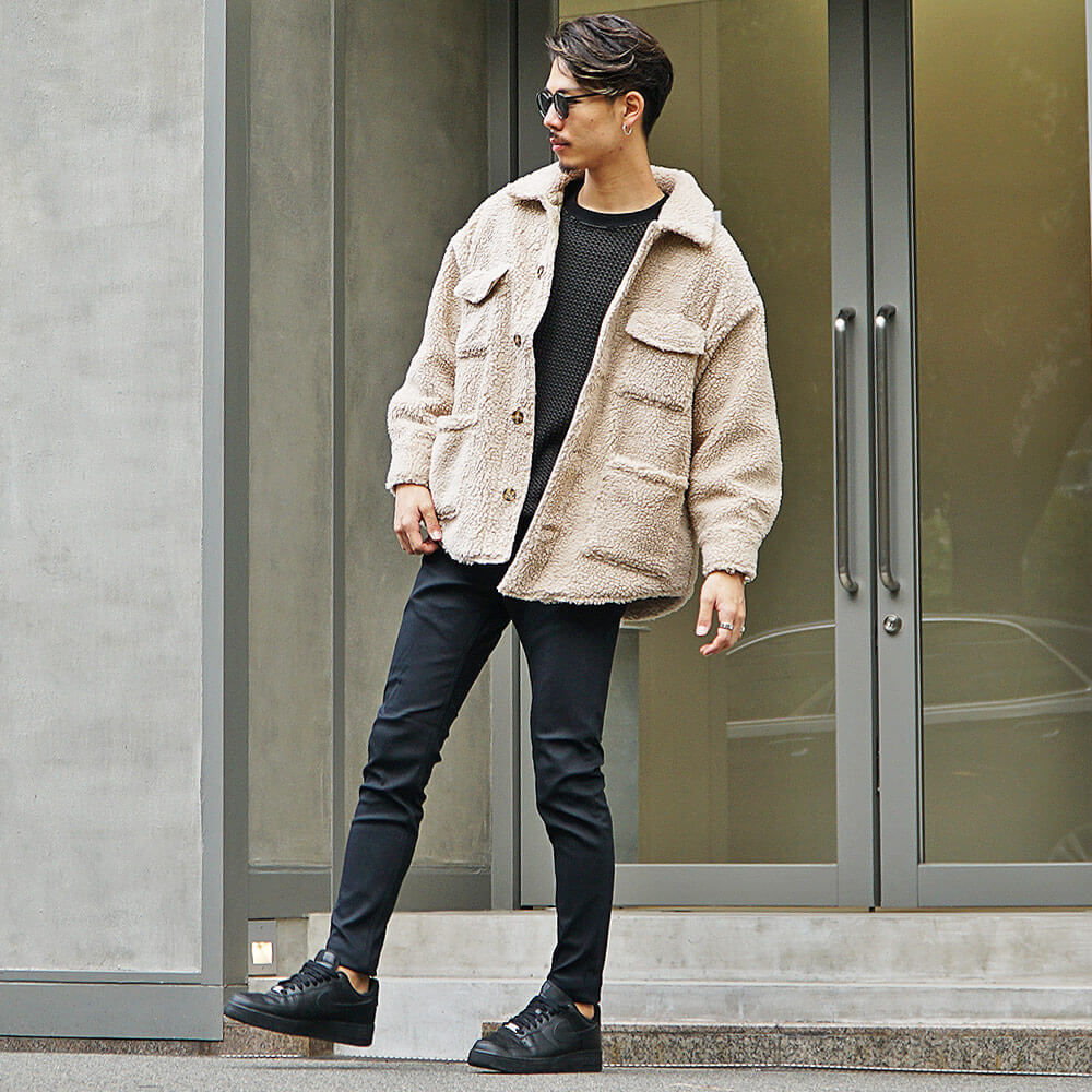 ボアジャケットはカジュアルアイテムなので、キレイめなシャツやパンツと合わせることで、キレイめとカジュアルのバランスがうまく取れ、簡単にオシャレになります!