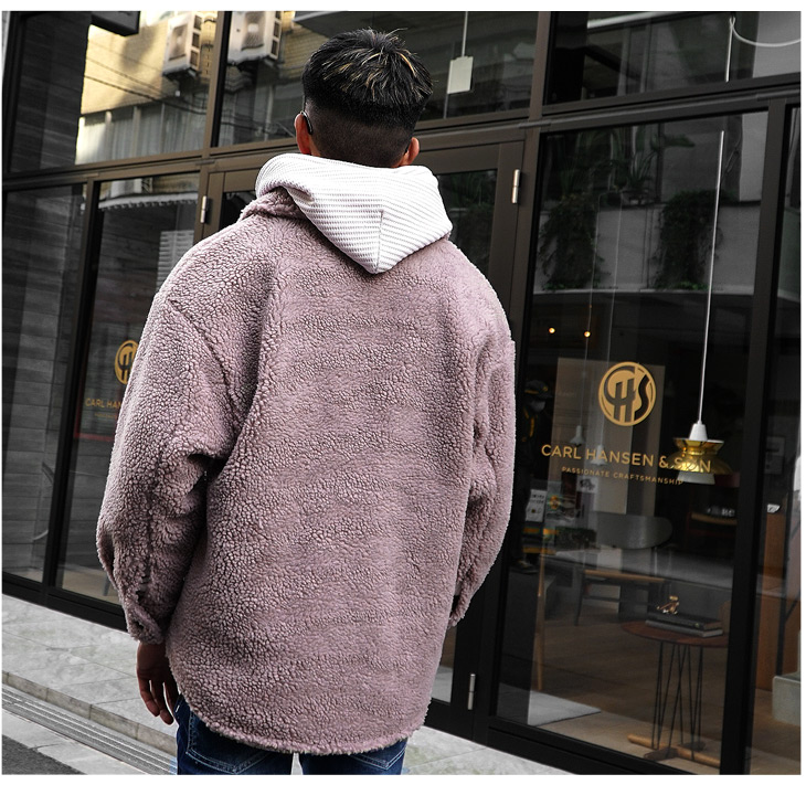 メンズにとって、ボアフリースジャケットは羽織るだけでオシャレになれるのはもちろん、機能性も良くて万能アイテムと言えますね!こちらも、柔らかく優しげな印象を与えることができるので、特に30代後半を迎えて、少しオジサンぽくなってきたなと考えているメンズなどには、挑戦していただきたいアイテムです!