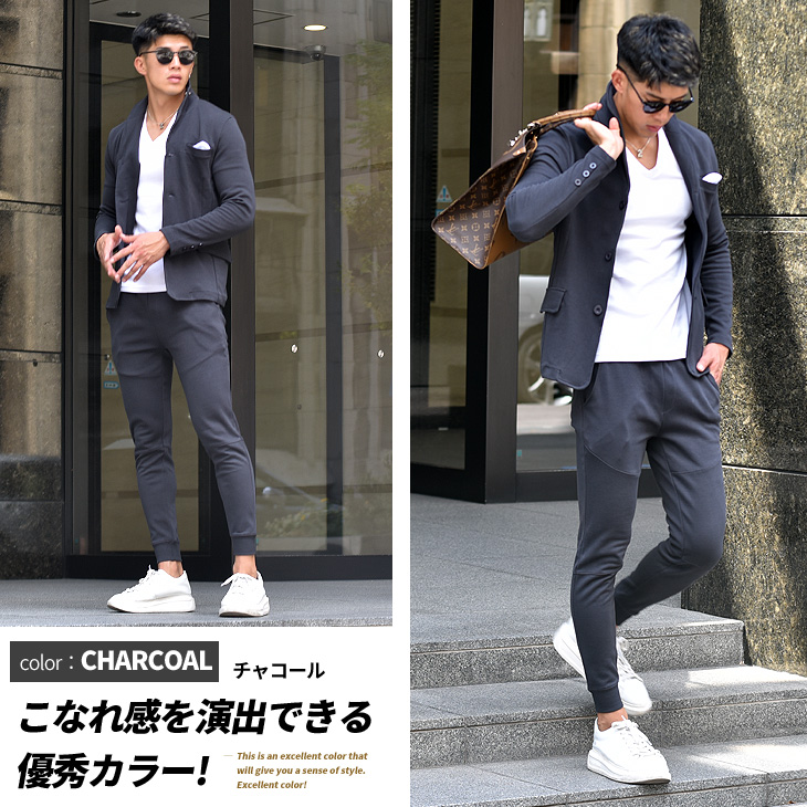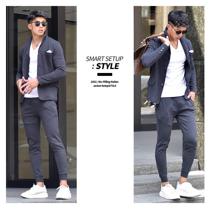 カジュアルな雰囲気を保ってオシャレに決められるスウェット素材のジャケットセットアップはおススメ!
