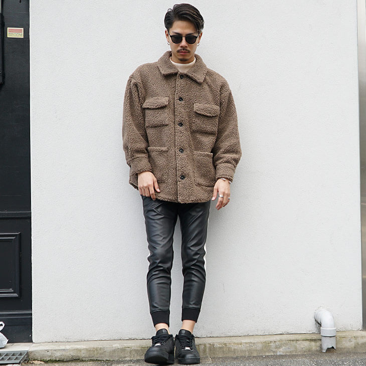 ドライブやショッピングデートの春のカジュアルコーデには、CPOジャケットにレザーパンツのトレンド感のあるアイテムを合わせたコーデがオシャレさを簡単に感じさせることができます。