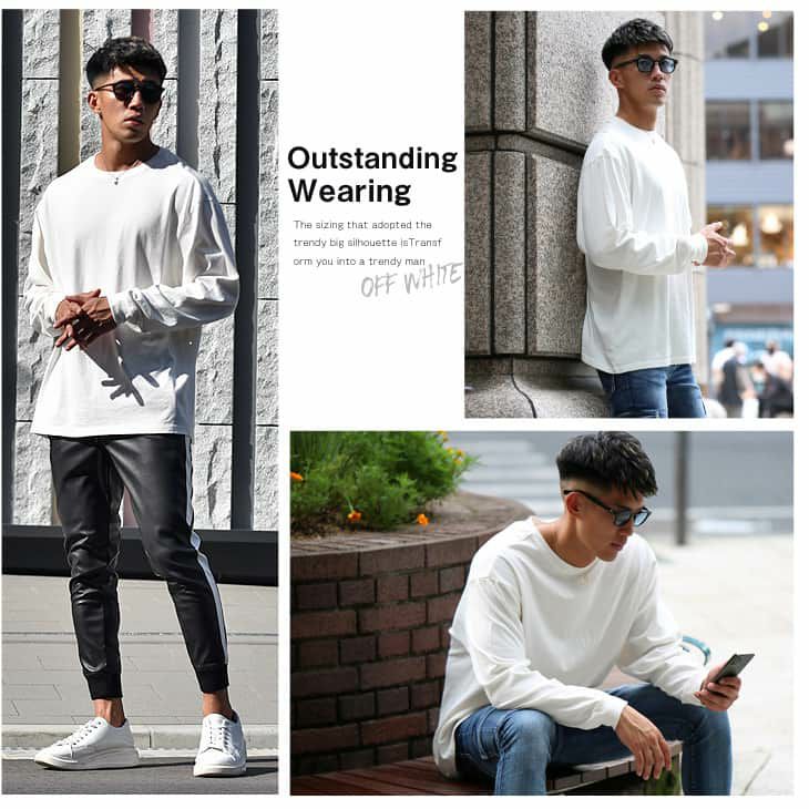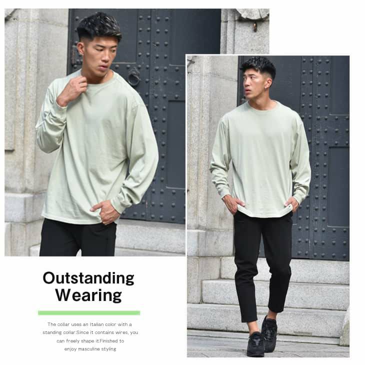 全体に適度にゆとりをもたせたカットソーだからこそ簡単に細見えするメンズの定番アイテム。