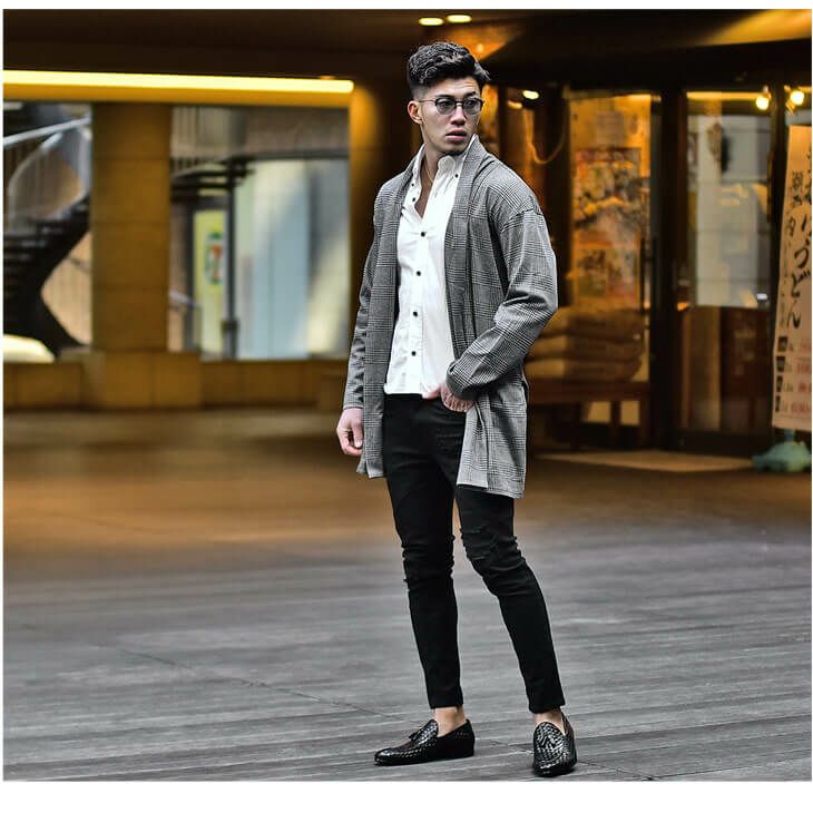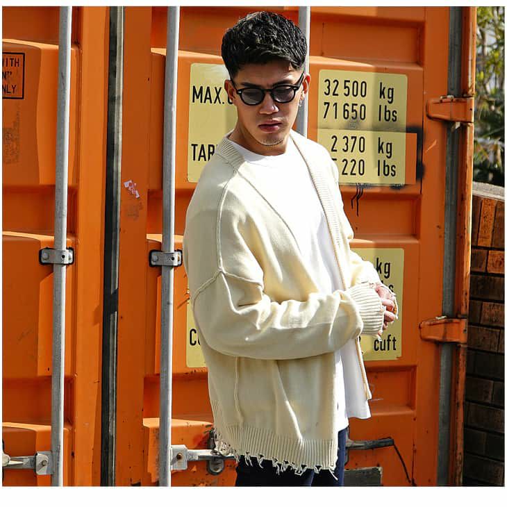 ザックリと羽織れるカーディガンなら肩幅も広くしっかりと体系カバーができるので、細見えメンズコーデに向いているアイテムと言えます。