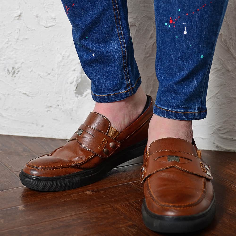 スッキリしたスタイルの靴やスニーカーを選べば下半身がほっそりした印象になりやすいです。