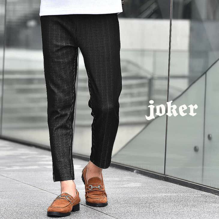 ボトムスに関してはピタピタのスキニータイプというより「ストレッチ感のあるパンツをジャストサイズで穿く」という感覚でOKです。