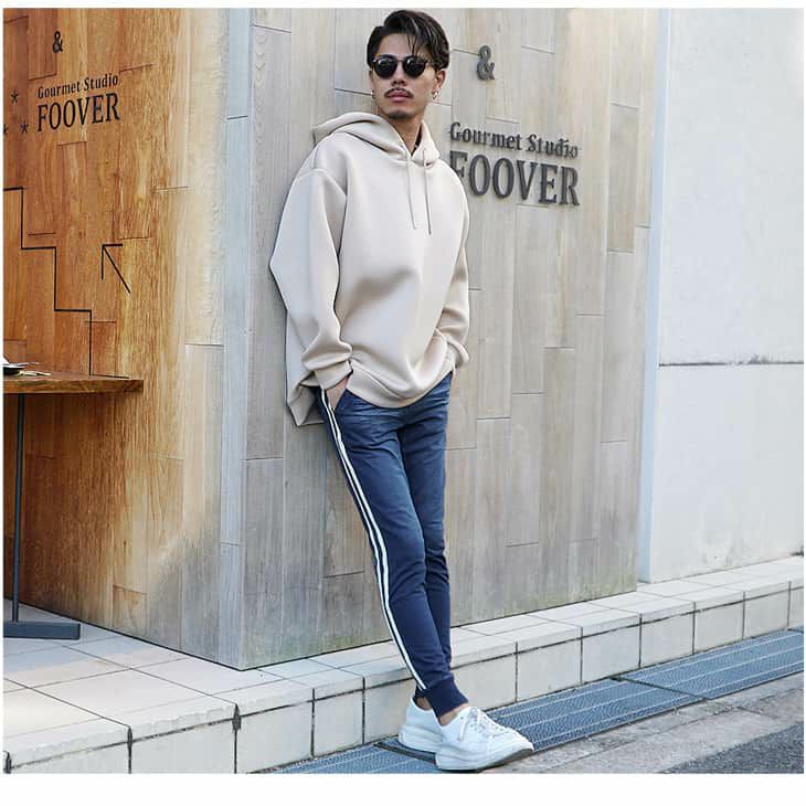 とくにサイドラインパンツはスポーティな要素が高いので、パーカーやトレーナーなどカジュアルなアイテムとあわせるとよりトレンド感のあるメンズコーディネートが楽しめます。
