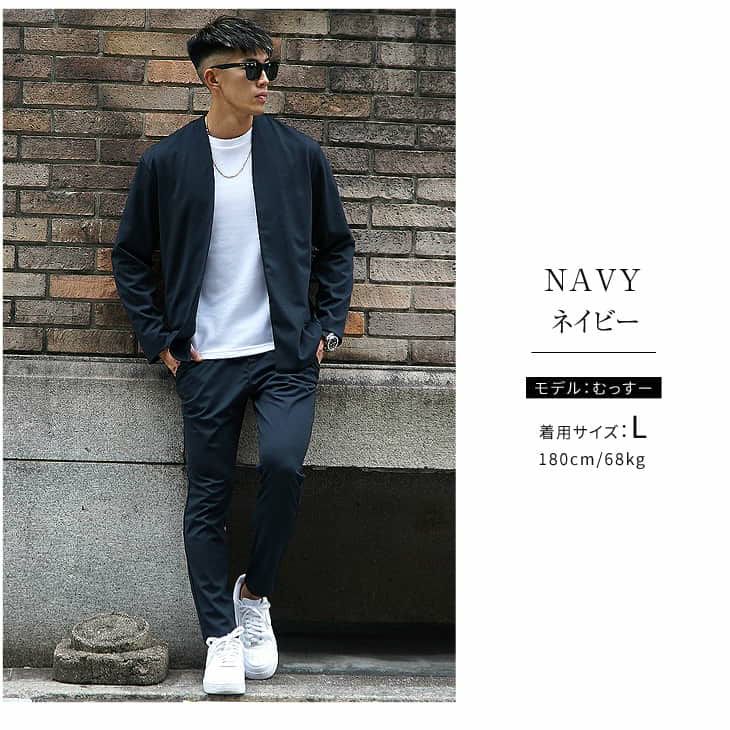 インナーにセットアップよりも明るい色を取り入れることで、より縦のラインを作ることができ、爽やかでスマートなメンズの印象を与えられます。