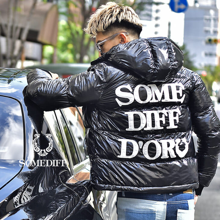 下部にロゴデザインを散りばめたデザインは1枚で主役になれるアウターなのでデニムやシンプルなインナーでバランスをとるのが正解です。