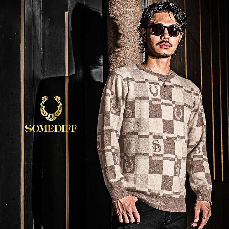 モノグラム柄アウターはクールなアイテムですがナチュラルなカラーリングで温かみをプラスしています。