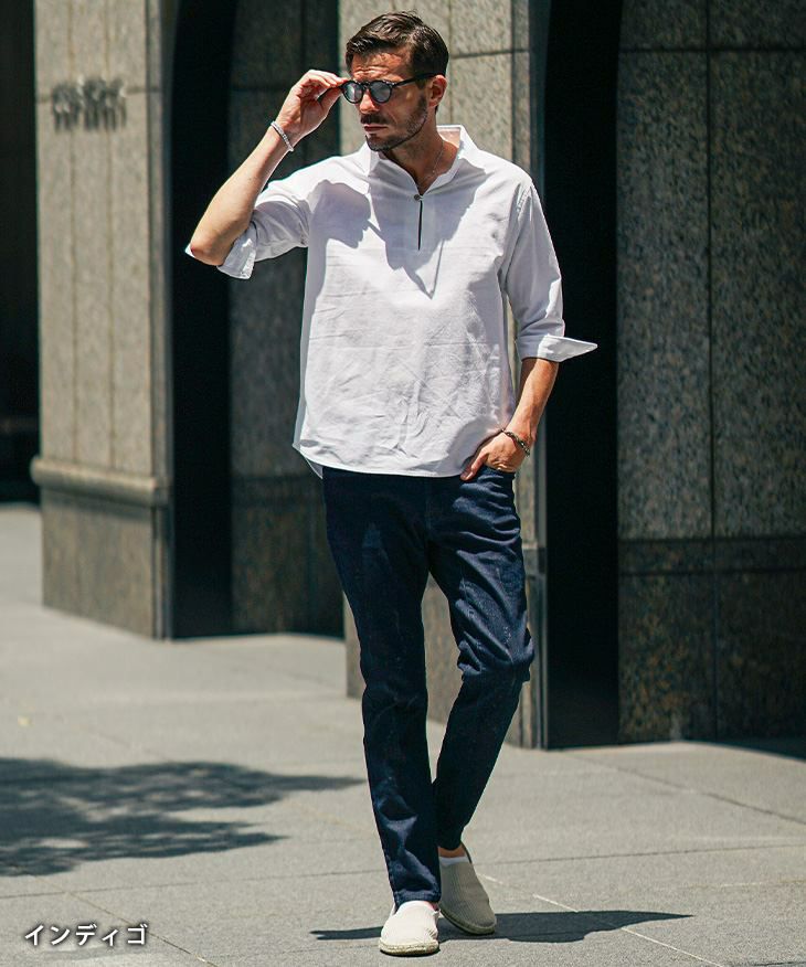 品よくスマートに決まる『オルタネートストライプアンクルパンツ』