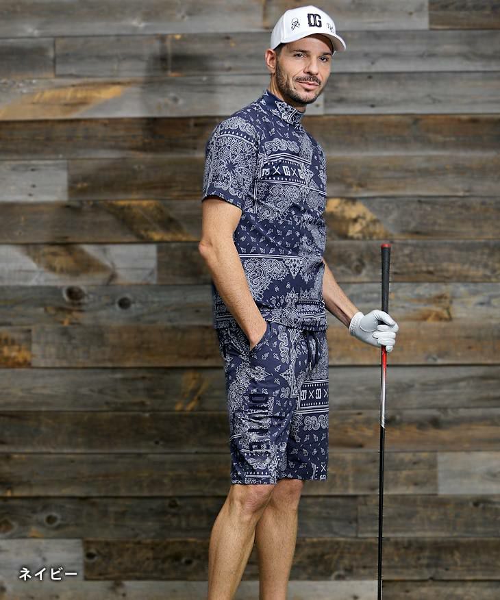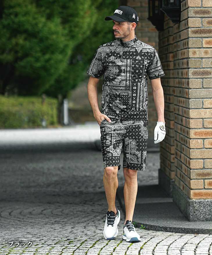 DIVINER GOLF 【DIVINER GOLF】ペイズリー柄半袖モックネックセットアップ