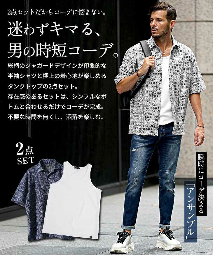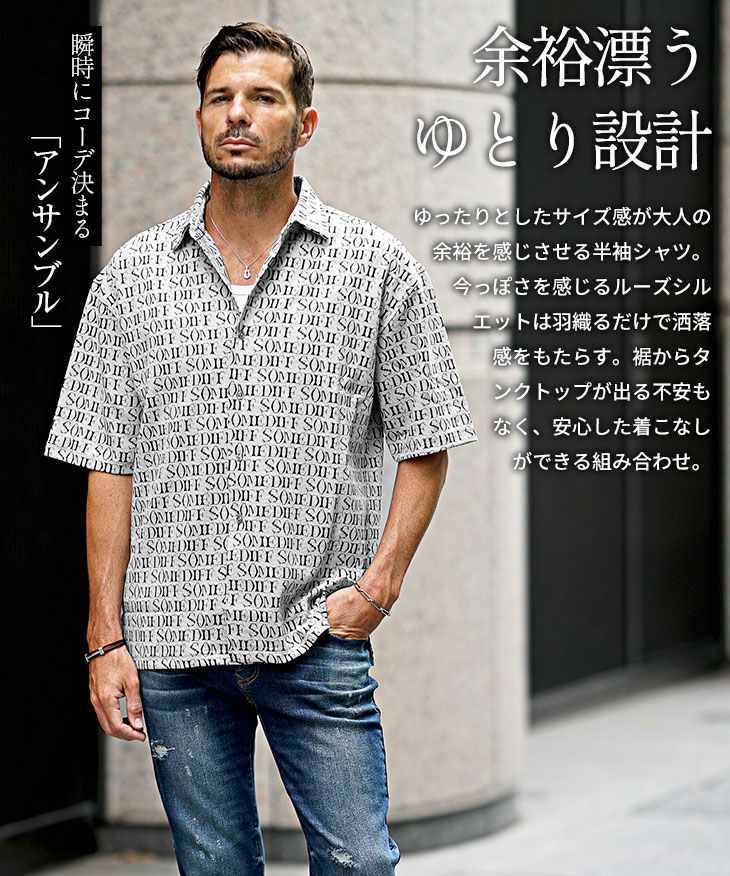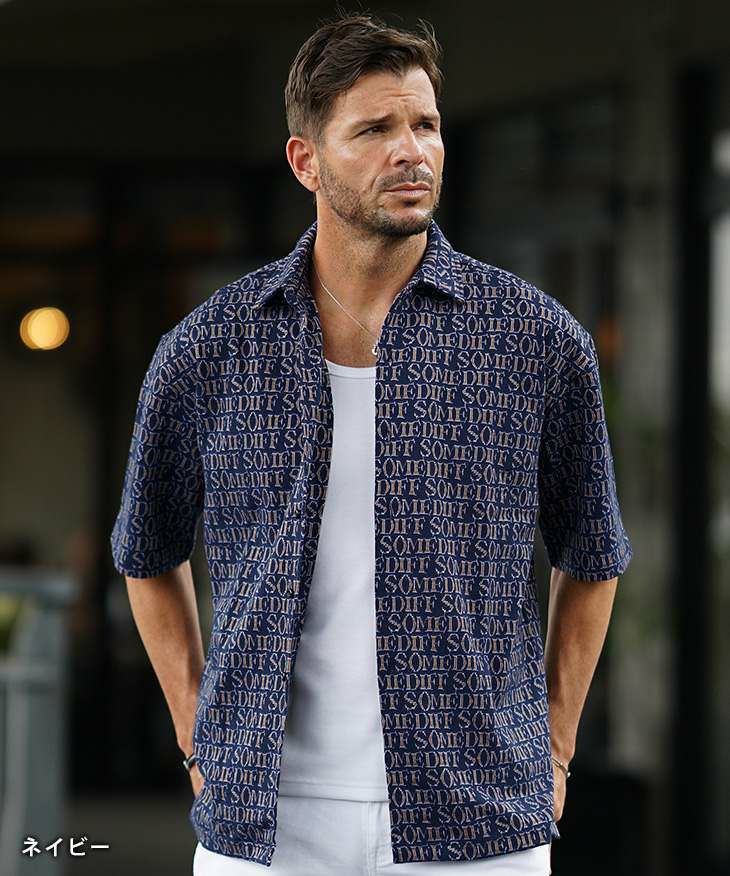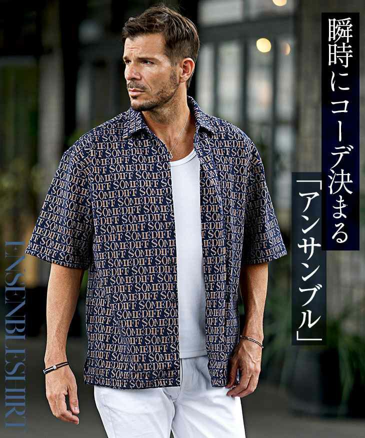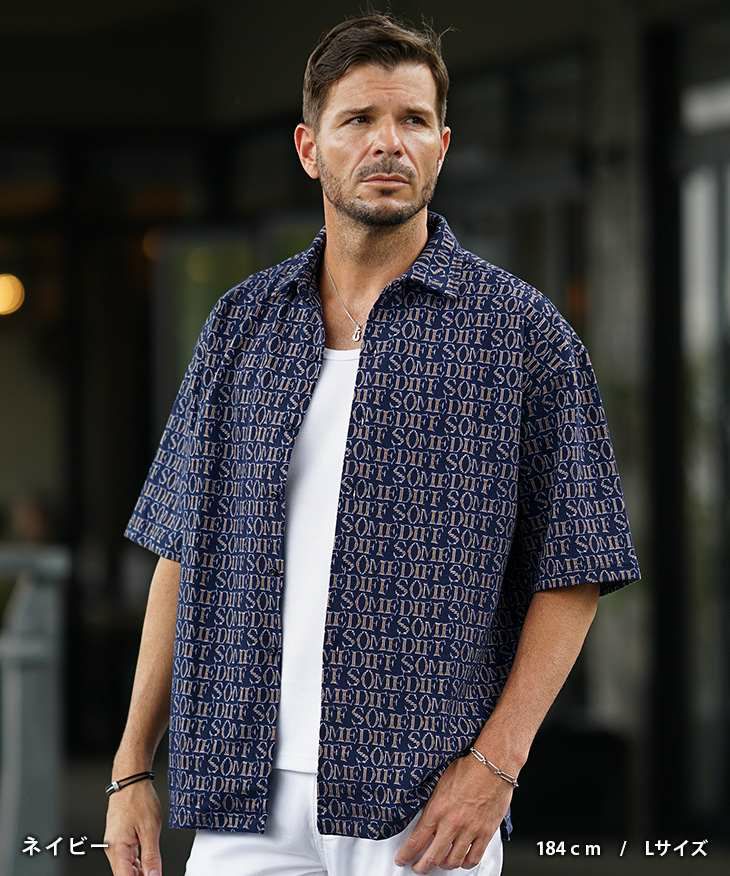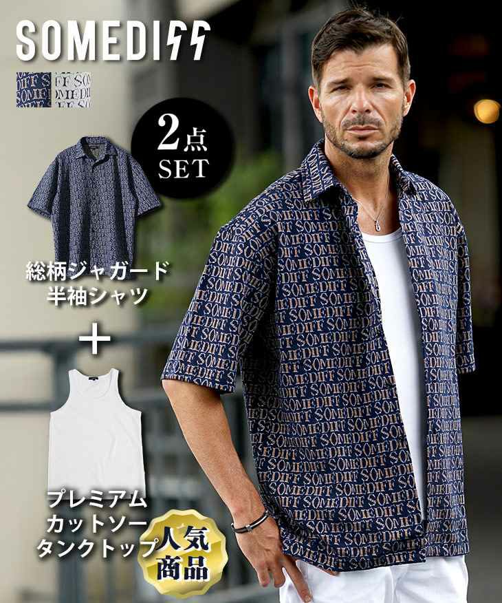 SOMEDIFF/サムディフ (2点セット)アンサンブル総柄ジャガード半袖シャツ