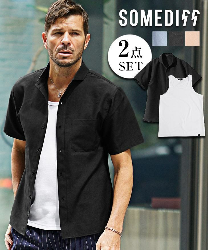 SOMEDIFF/サムディフ (2点セット)アンサンブルリネンライク半袖シャツ