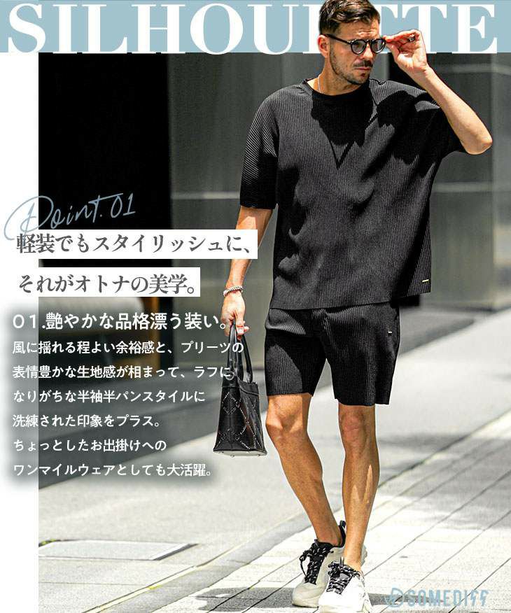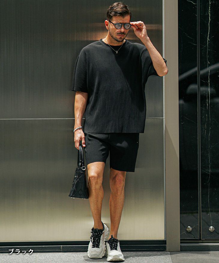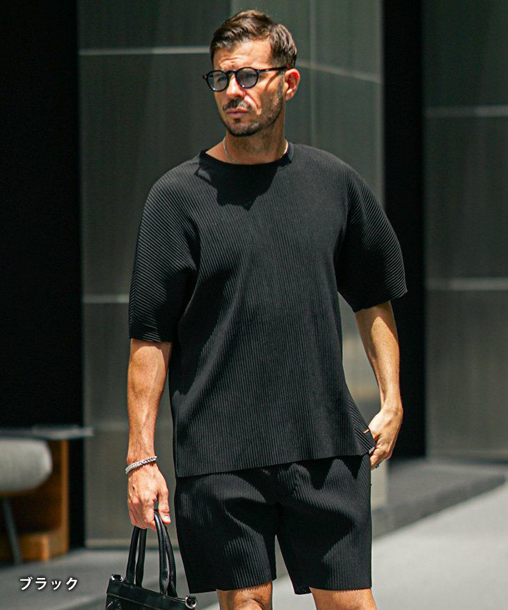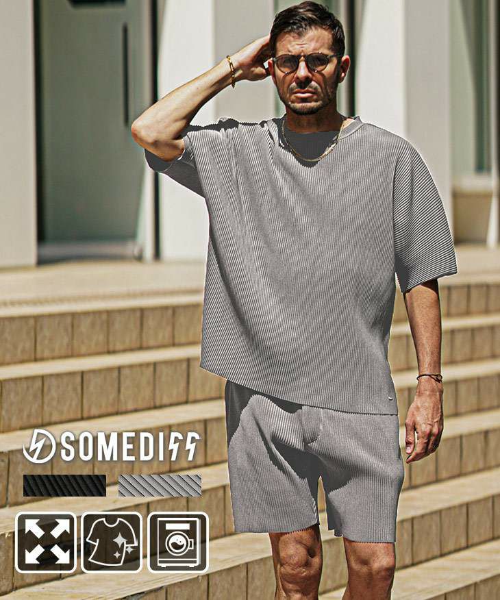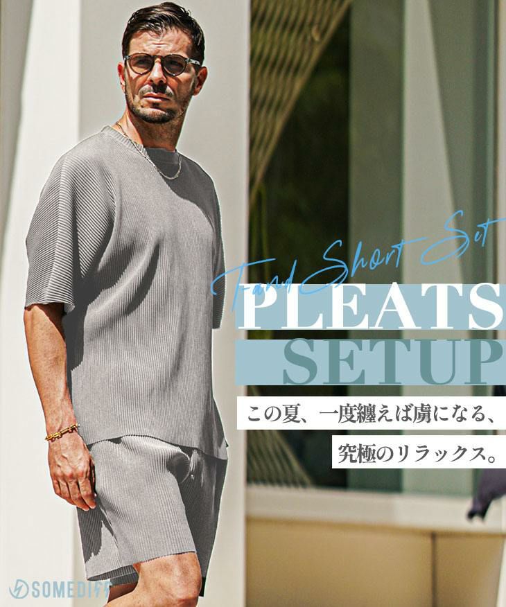 SOMEDIFF/サムディフ プリーツTシャツ&ショーツセットアップ