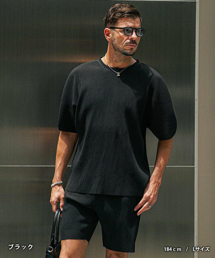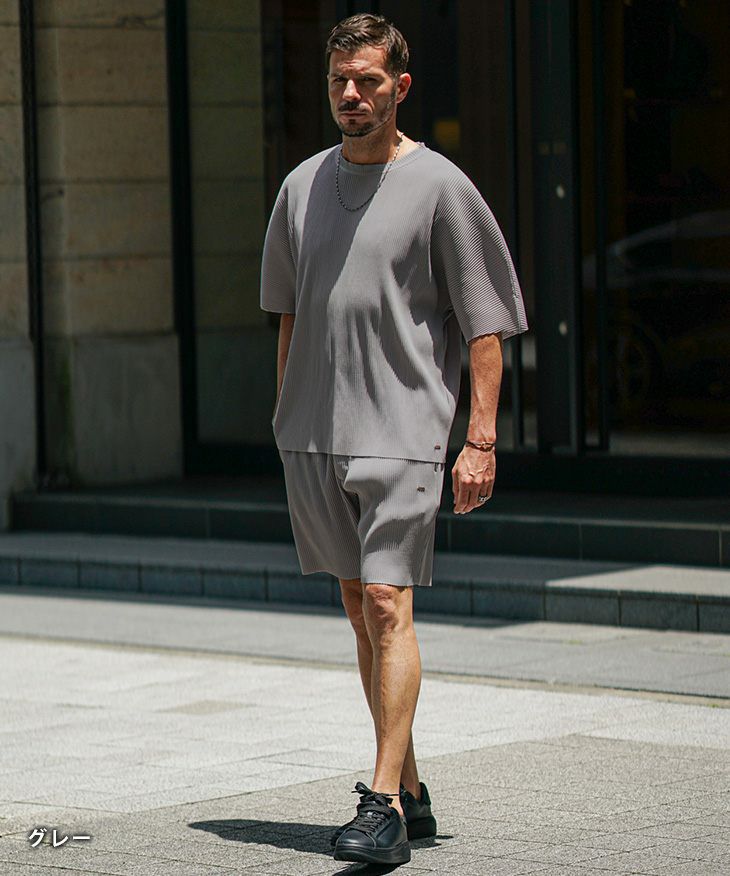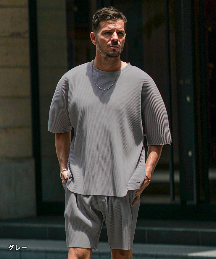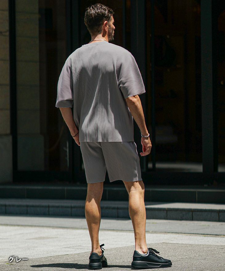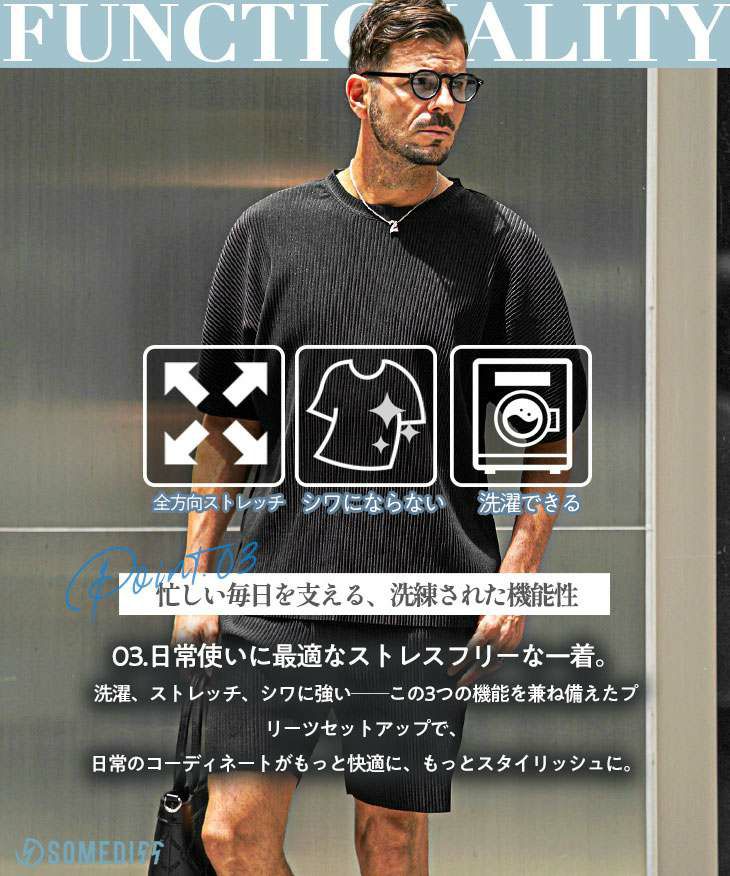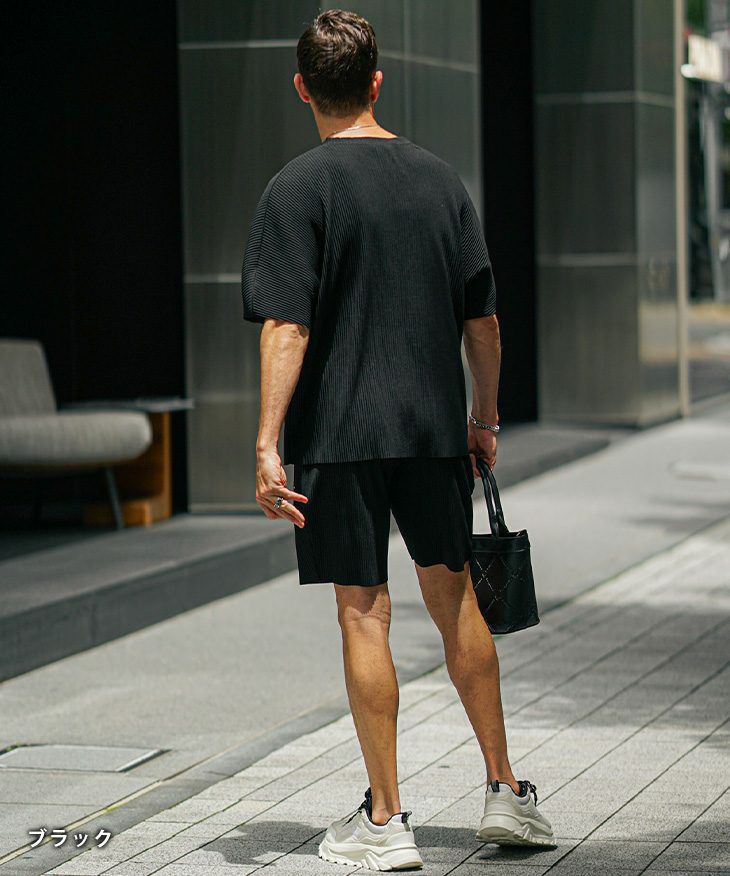 SOMEDIFF/サムディフ プリーツTシャツ&ショーツセットアップ